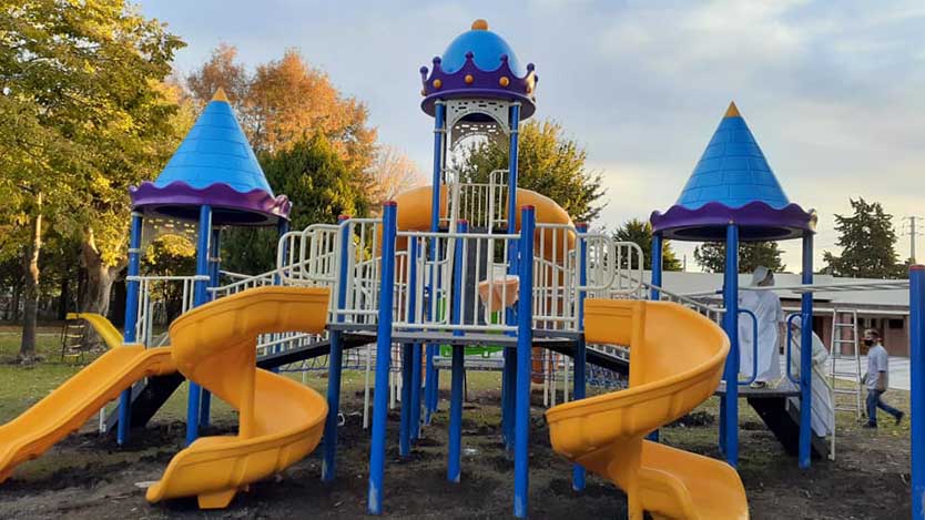 Tras una jornada de trabajo, se levantaron las estructuras, una de las cuales lleva un mensaje en recuerdo a la niña que reza "Blanca con tu luz aquí jugamos".